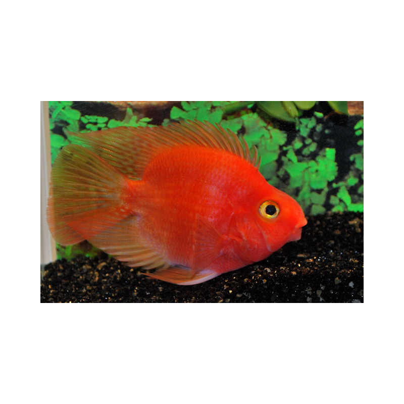 Algunos presentan ciertas anomalías en los ojos, en mayor o menor grado según los ejemplares. Presentan ojos de mayor tamaño al normal en Cichlasoma, que a menudo no son completamente redondos y el iris es desproporcionadamente grande en comparación con el resto del ojo, aunque es difícil decir en qué grado les afecta para su vida normal. Hay dos variedades mas de esta especie, un parrot sin aleta caudal y con forma de corazón, denominado “Love Heart” en el que la forma se consigue amputando con una cuchilla la aleta caudal cuando son muy jóvenes, para conseguir que las aletas anal y dorsal se cierren sobre el hueco dejado por esta.