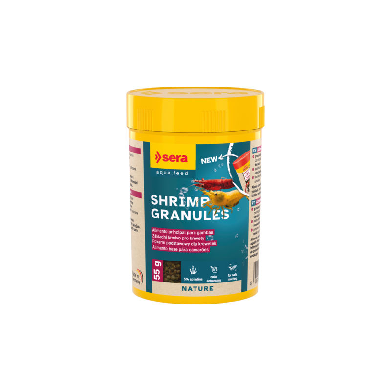 Shrimp Granules es el alimento principal a base de granulado cuidadosamente elaborado, sin colorantes ni conservantes, para todas las gambas de agua dulce y salada.